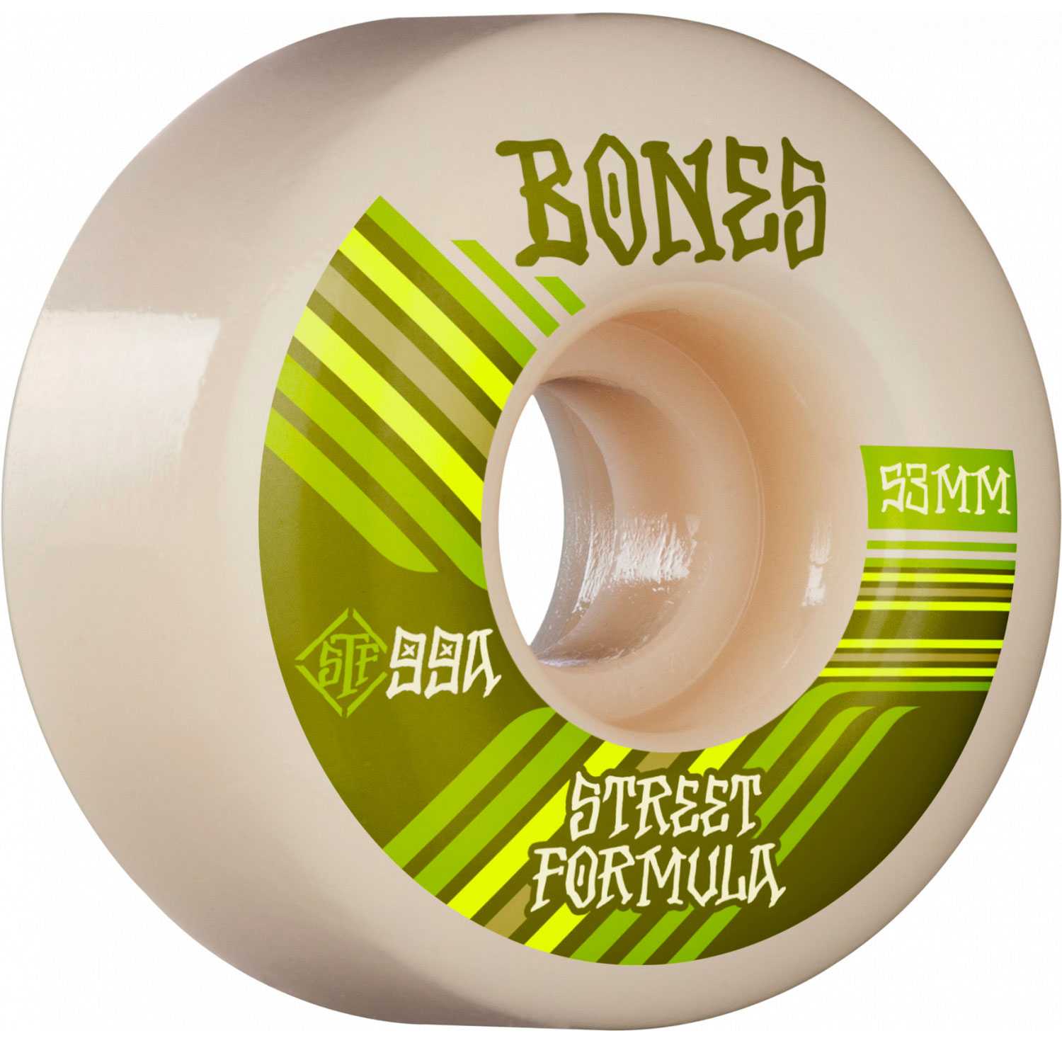 SKU WSCAERV45399A4 UPC 842357159969 Brand BONES WHEELS Wheel Core None Wheel Diameter 53mm Wheel Width 34mm Wheel Hardness 99a Wheel Formula STF Wheel Color White Wheel Suggested Use Street Wheel Surface Smooth Wheel Shape V4
