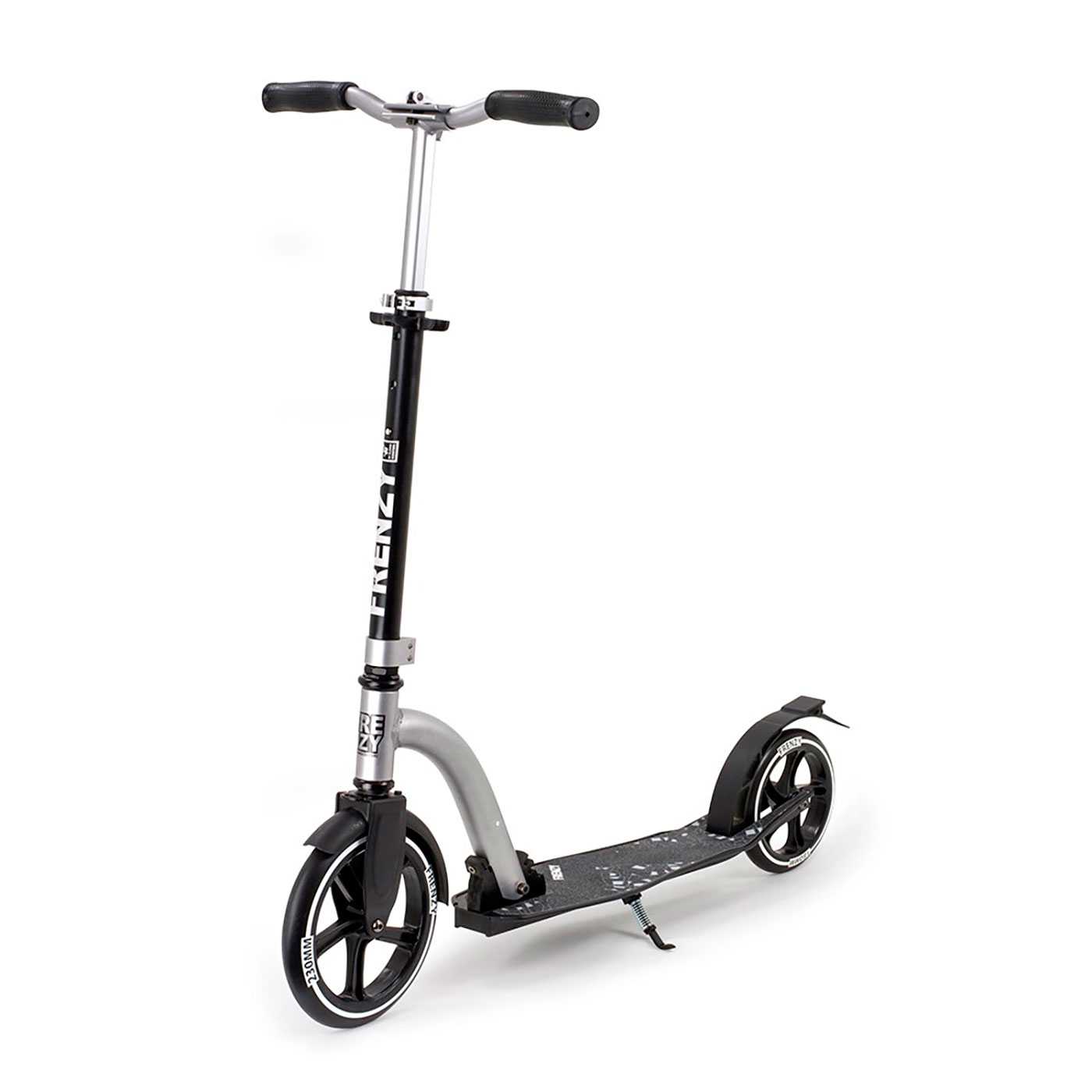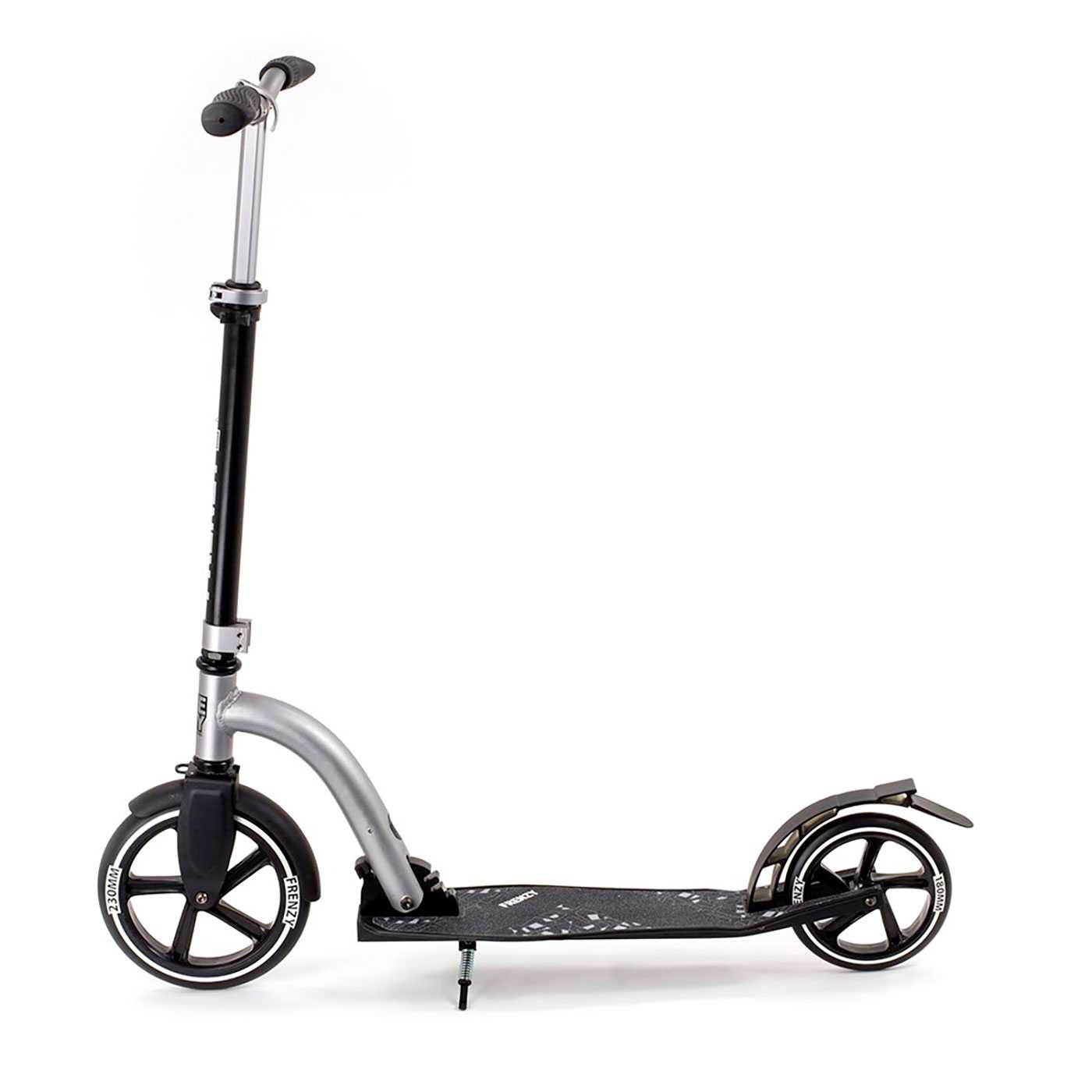 Frenzy har givet deres 230 mm transportløbehjul en fantastisk ansigtsløftning! Anti-wobble bar klemme og bredere dæk, der nu kommer som standard over hele sortimentet og flot grafisk stil gør denne scooter en sikker vinder. Stor hjulopsætning gør kørsel og drejning glat og stabil.