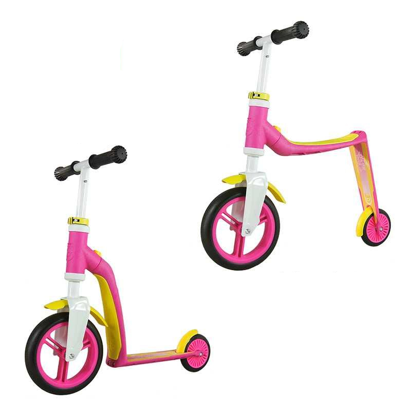 Multifunctional marvel, which is both a scooter and a scooter. Simply press a button and turn the back piece upwards to switch from the scooter to the scooter. With soft handle and a large front wheel that ensures a stable ride on various surfaces. The vehicle has an adjustable handlebar that can be adjusted from
