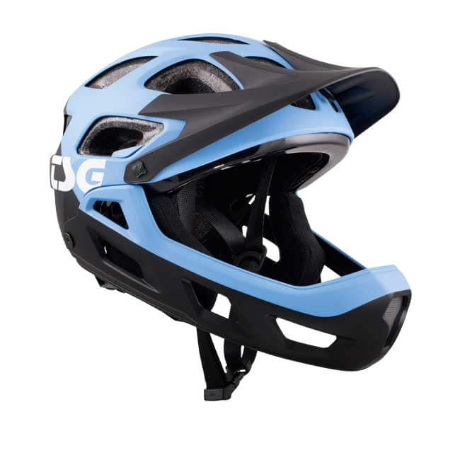 BMX / Mountain fullface helmet from TSG in sizes 52-54 and which is adjusted with a set screw.